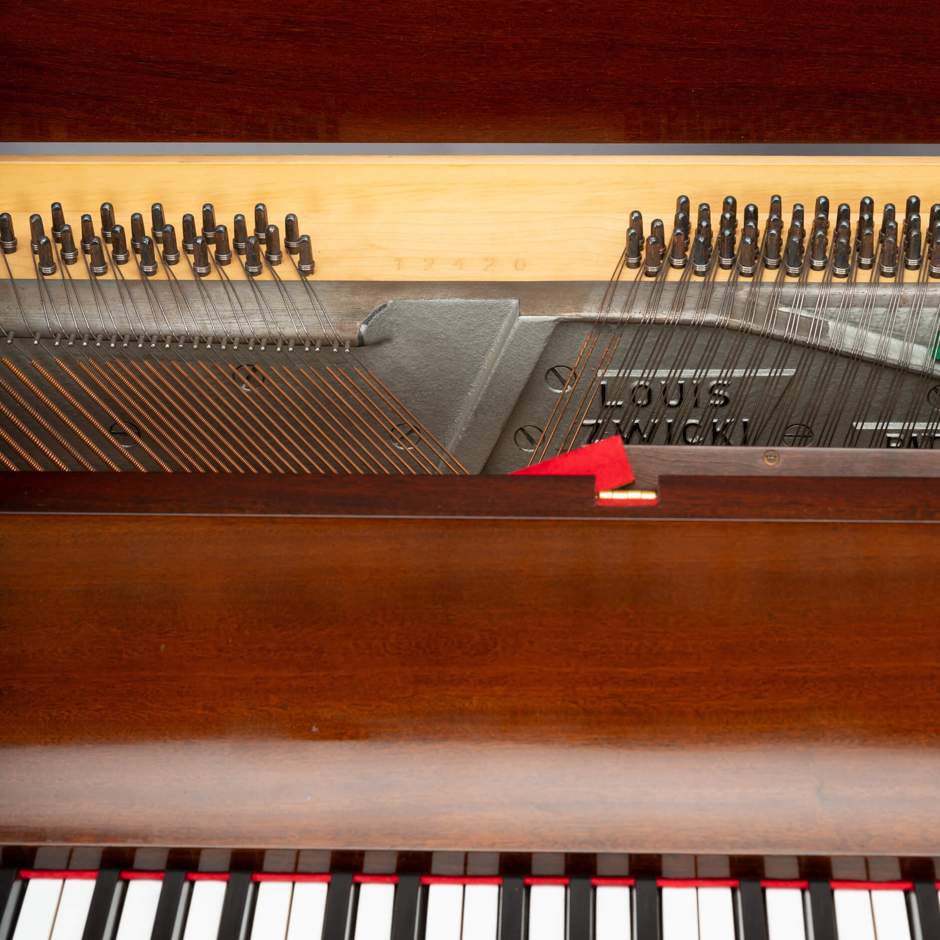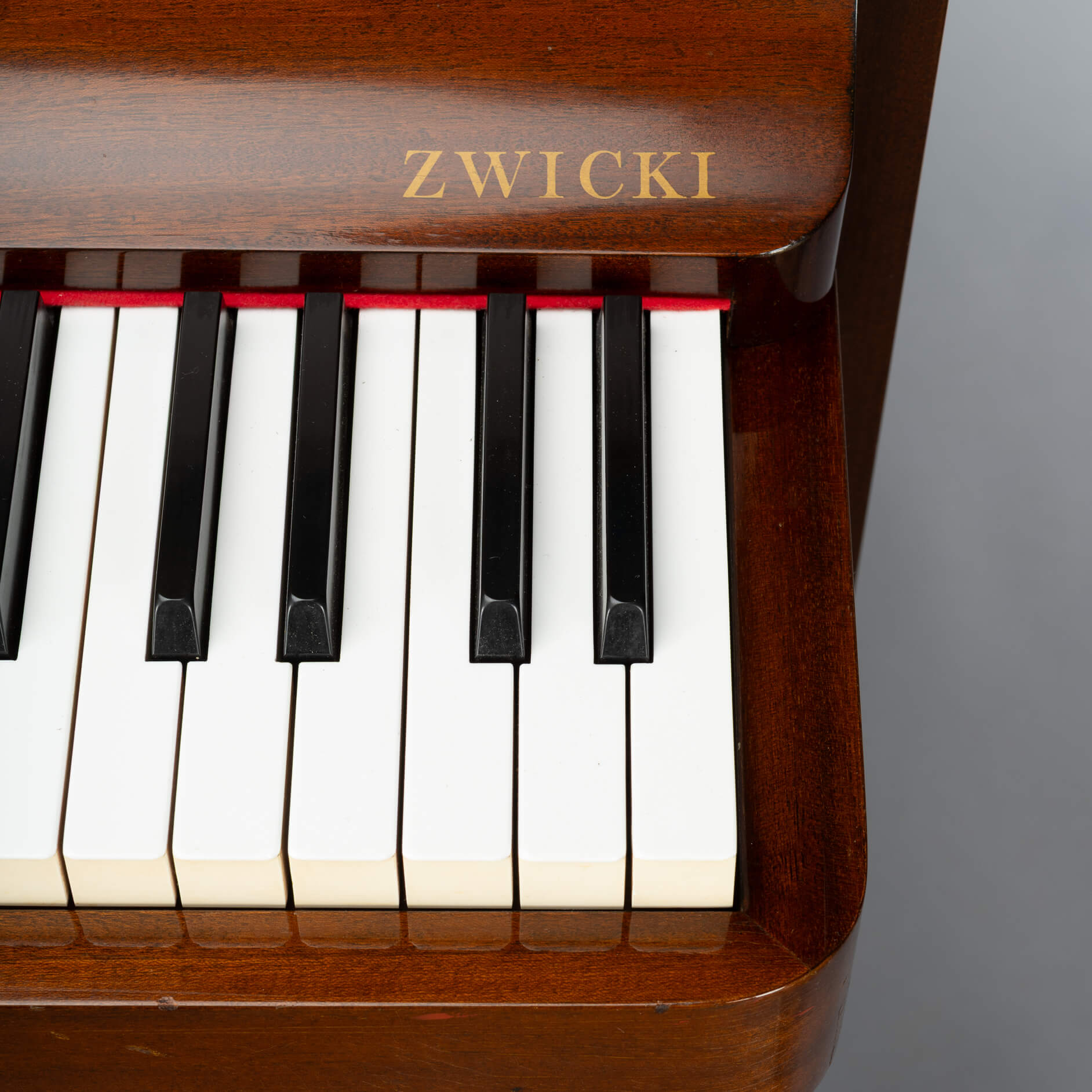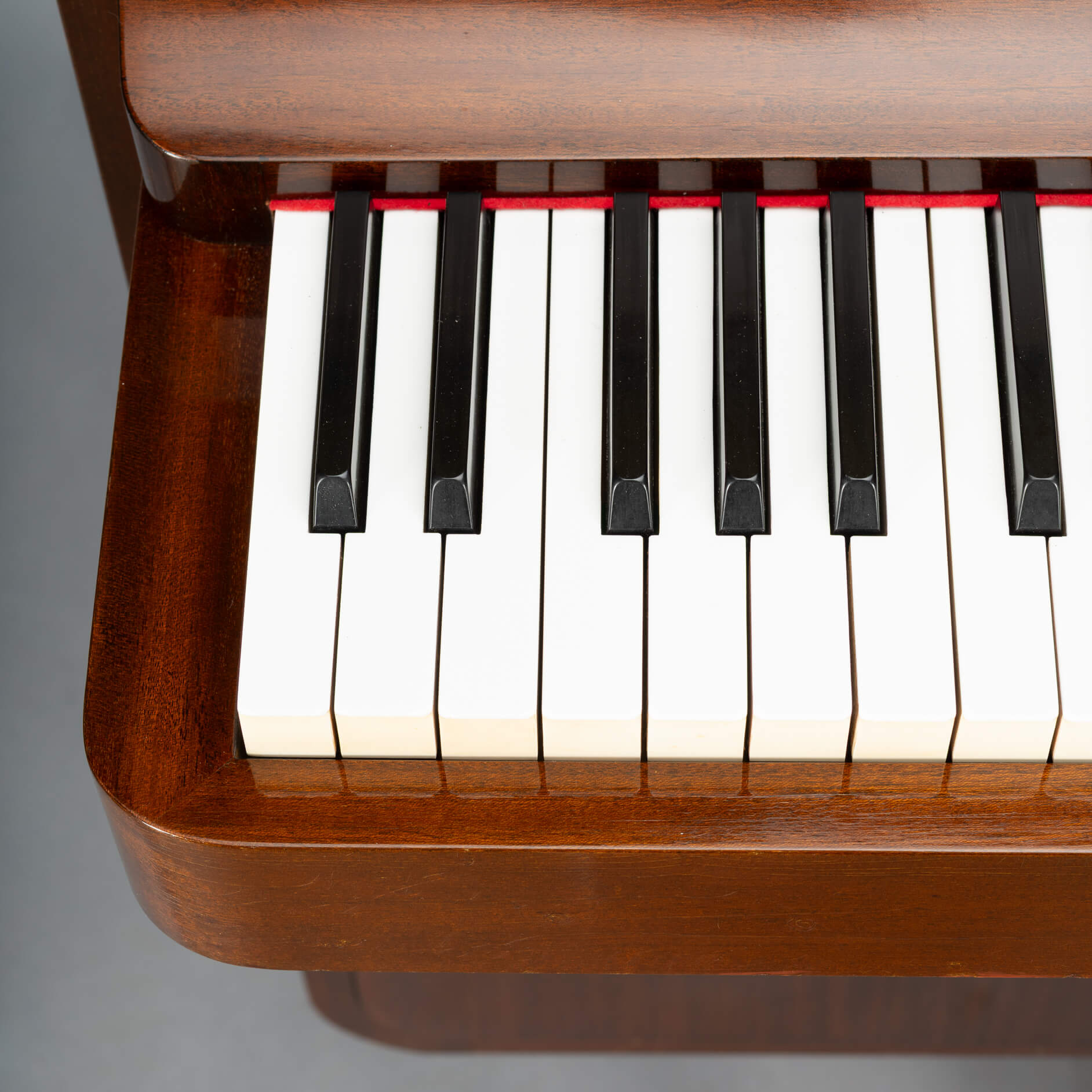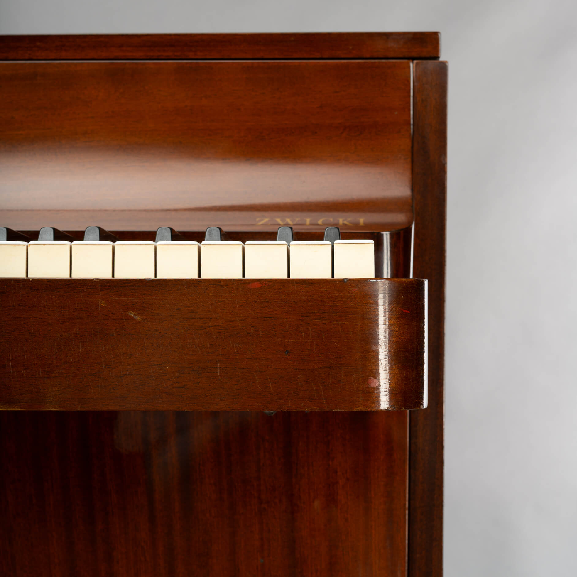 A rare Danish midcentury pianette made of mahogany. It is called pianette due to the 82 keys rather than the standard 88 of a full size piano. This pianette is made by renowned piano maker Louis Zwicki. Every piano from Louis Zwicki is numbered. This one is No. 10498. This piece stands out in a modern interior, lobby of a hotel etc.