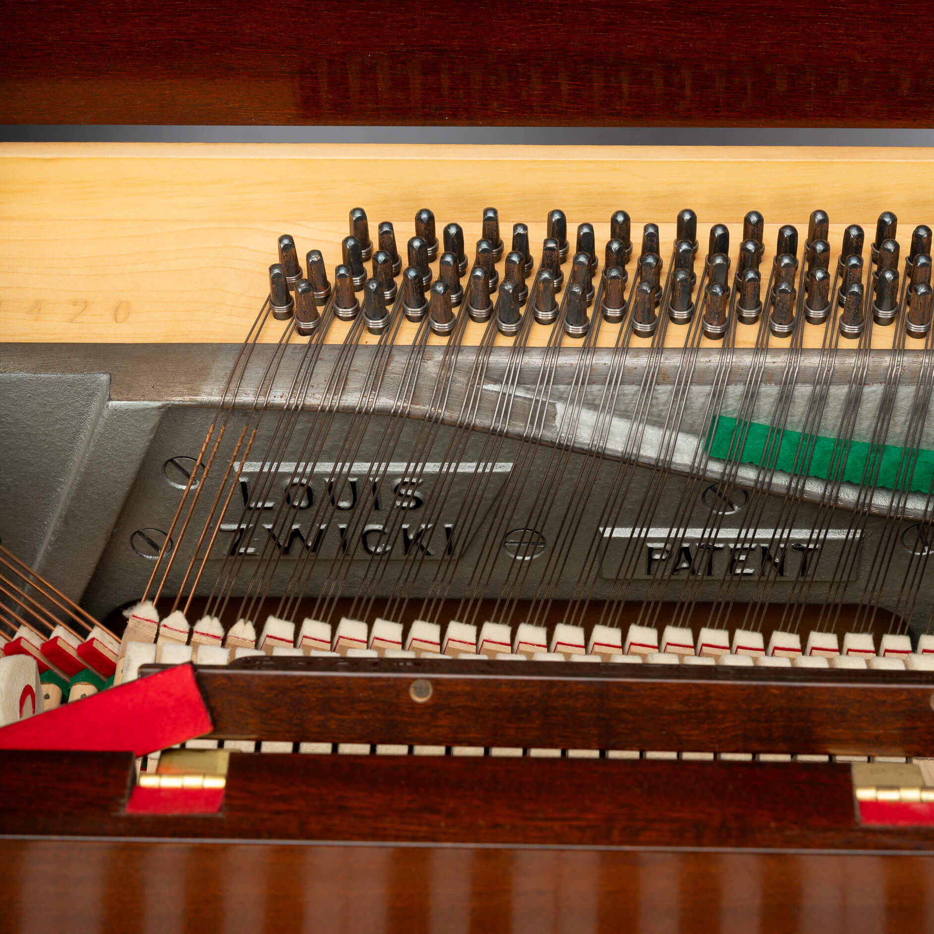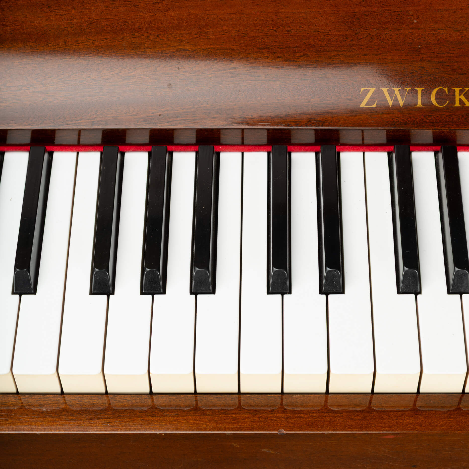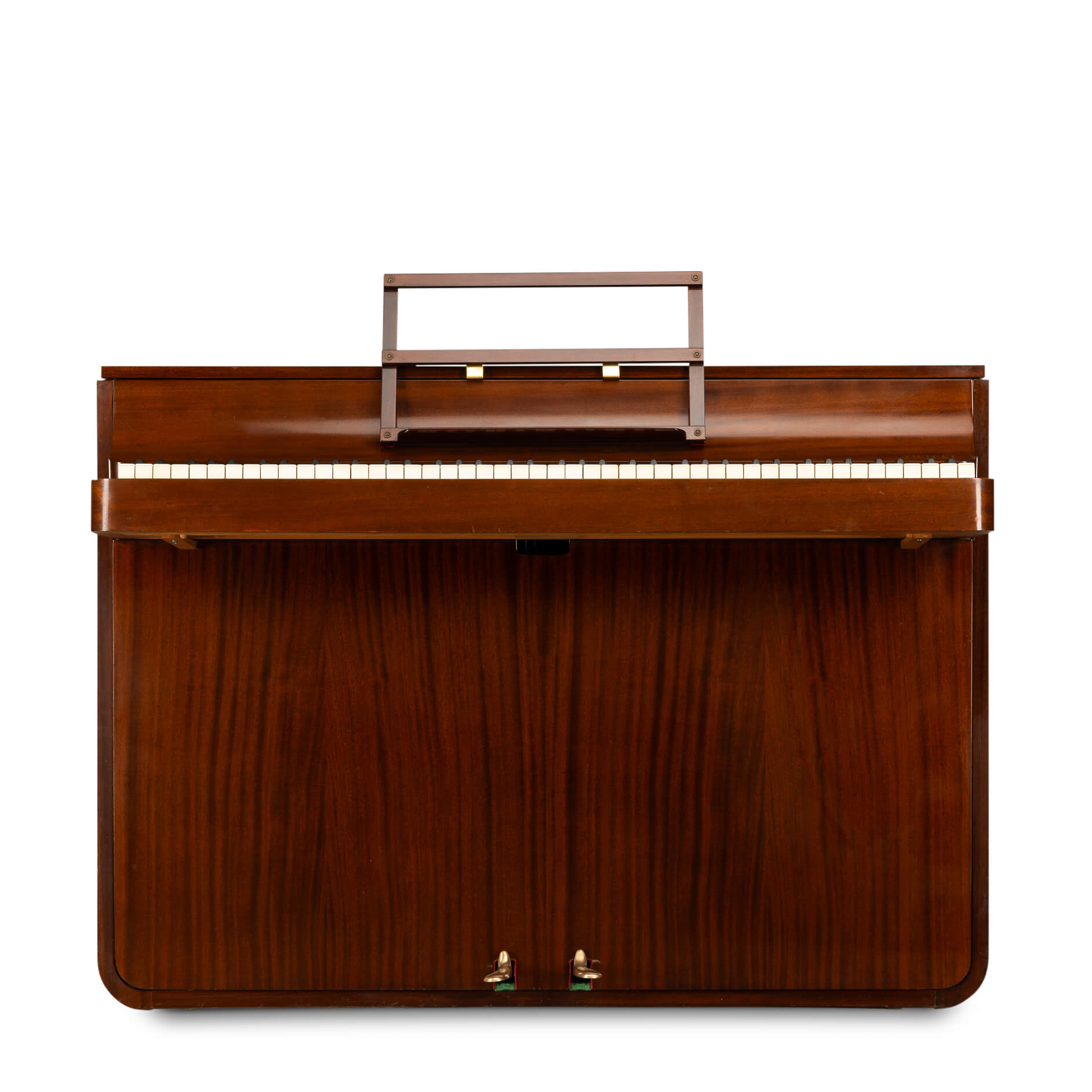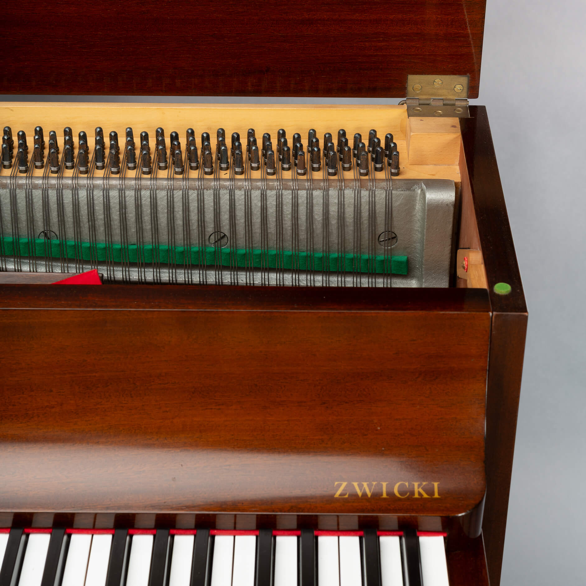 A rare Danish midcentury pianette made of mahogany. It is called pianette due to the 82 keys rather than the standard 88 of a full size piano. This pianette is made by renowned piano maker Louis Zwicki. Every piano from Louis Zwicki is numbered. This one is No. 10498. This piece stands out in a modern interior, lobby of a hotel etc.