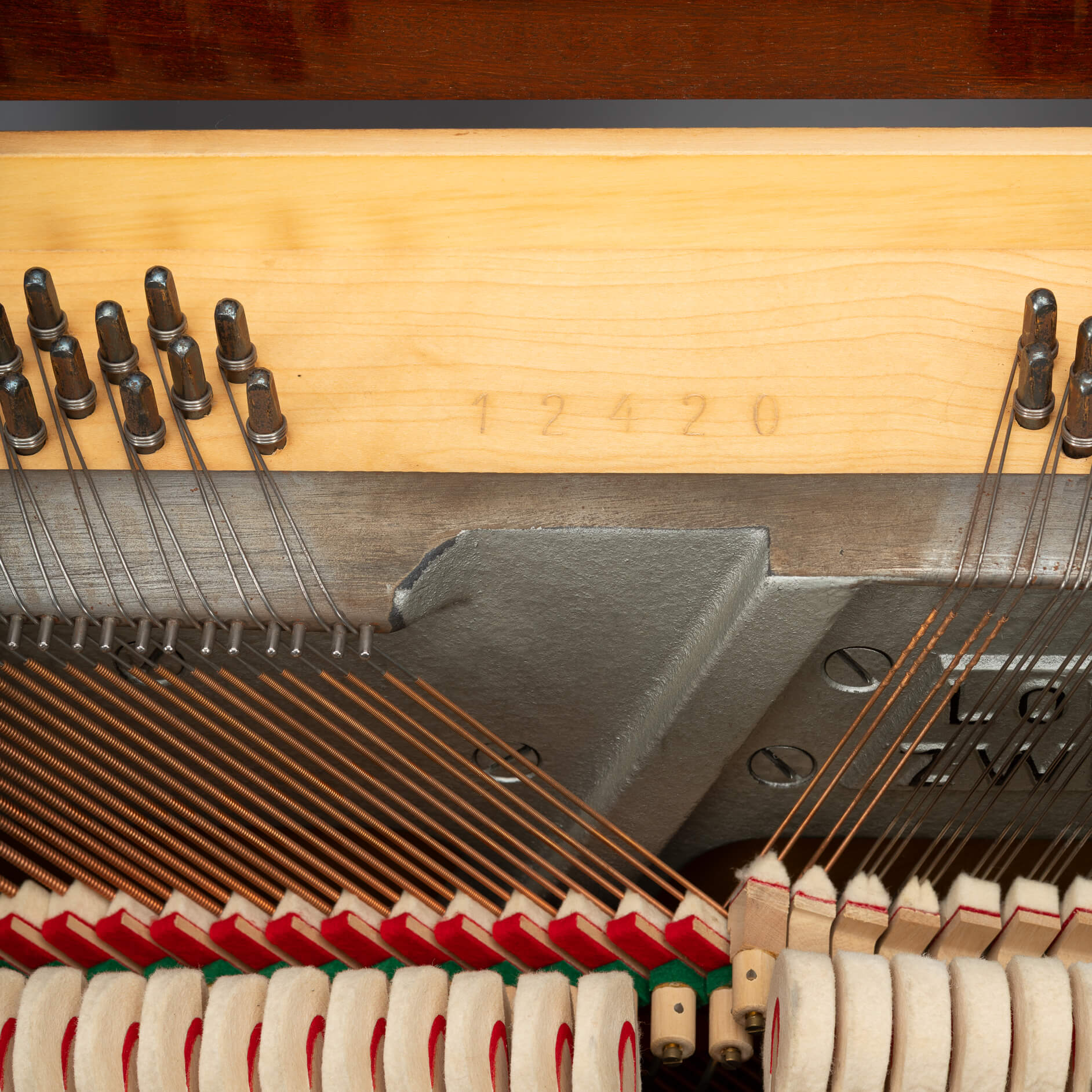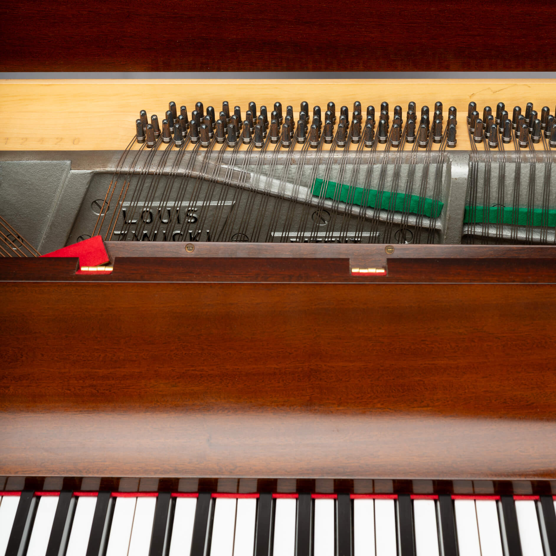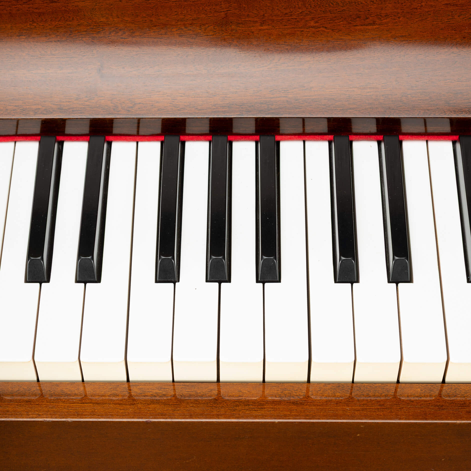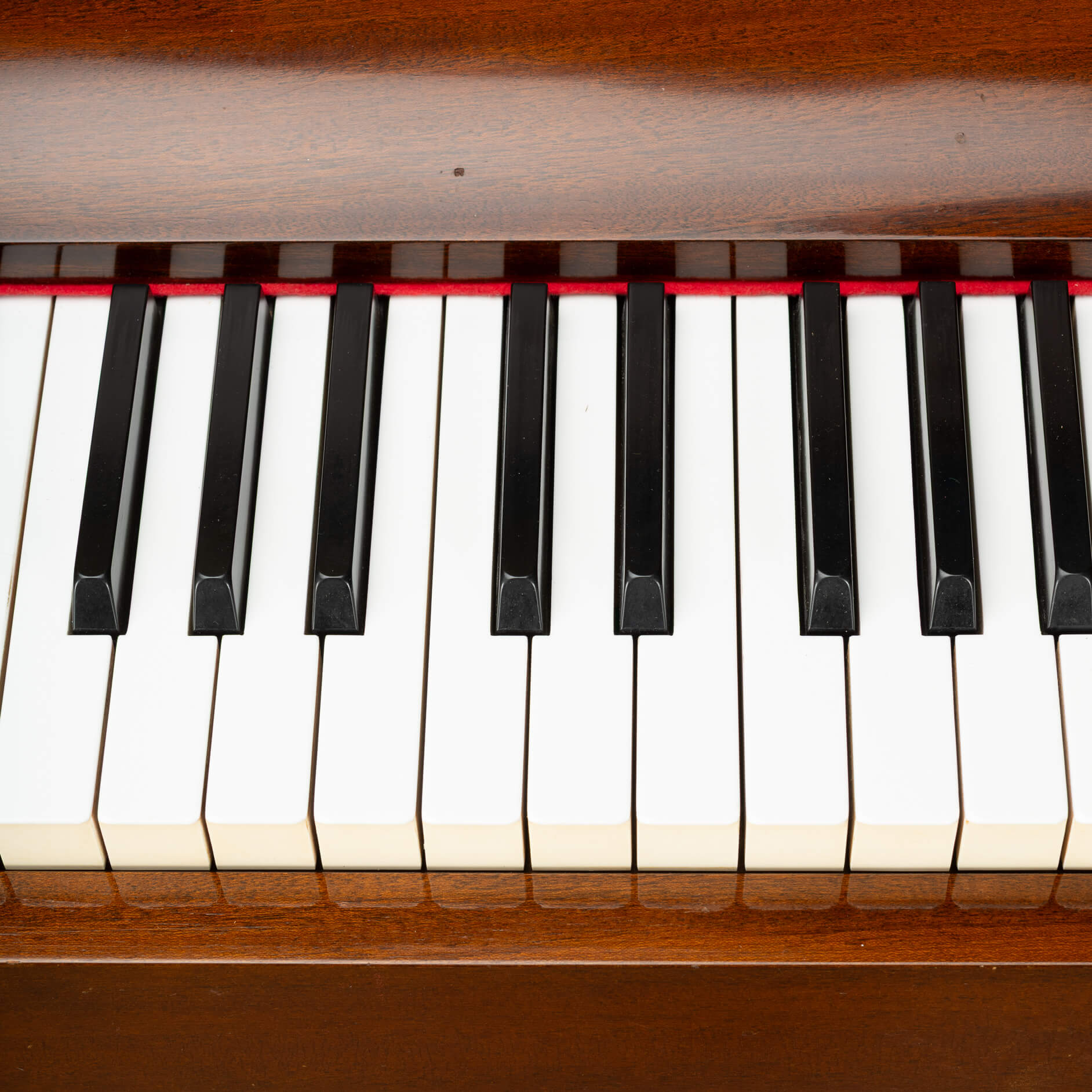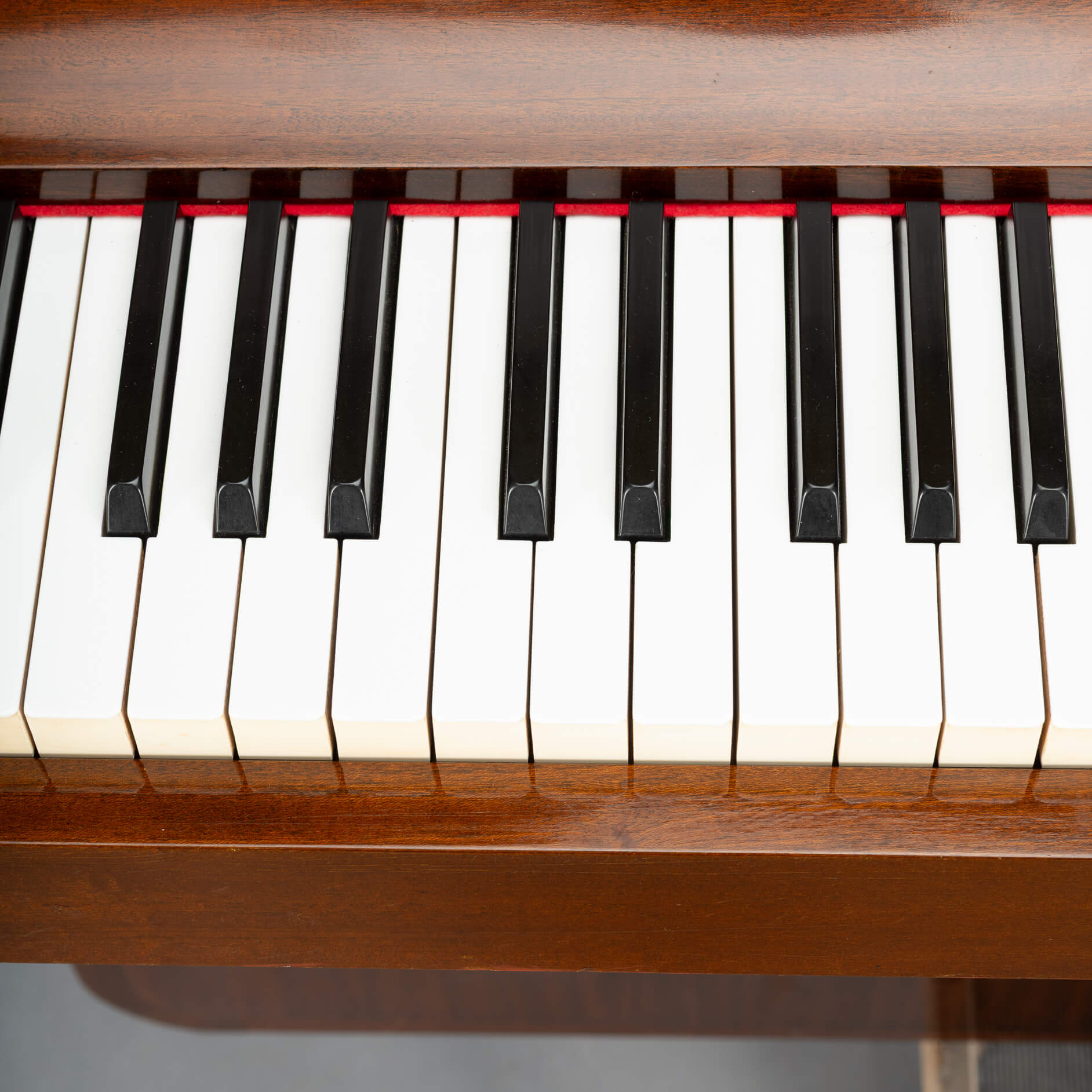 A rare Danish midcentury pianette made of mahogany. It is called pianette due to the 82 keys rather than the standard 88 of a full size piano. This pianette is made by renowned piano maker Louis Zwicki. Every piano from Louis Zwicki is numbered. This one is No. 10498. This piece stands out in a modern interior, lobby of a hotel etc.