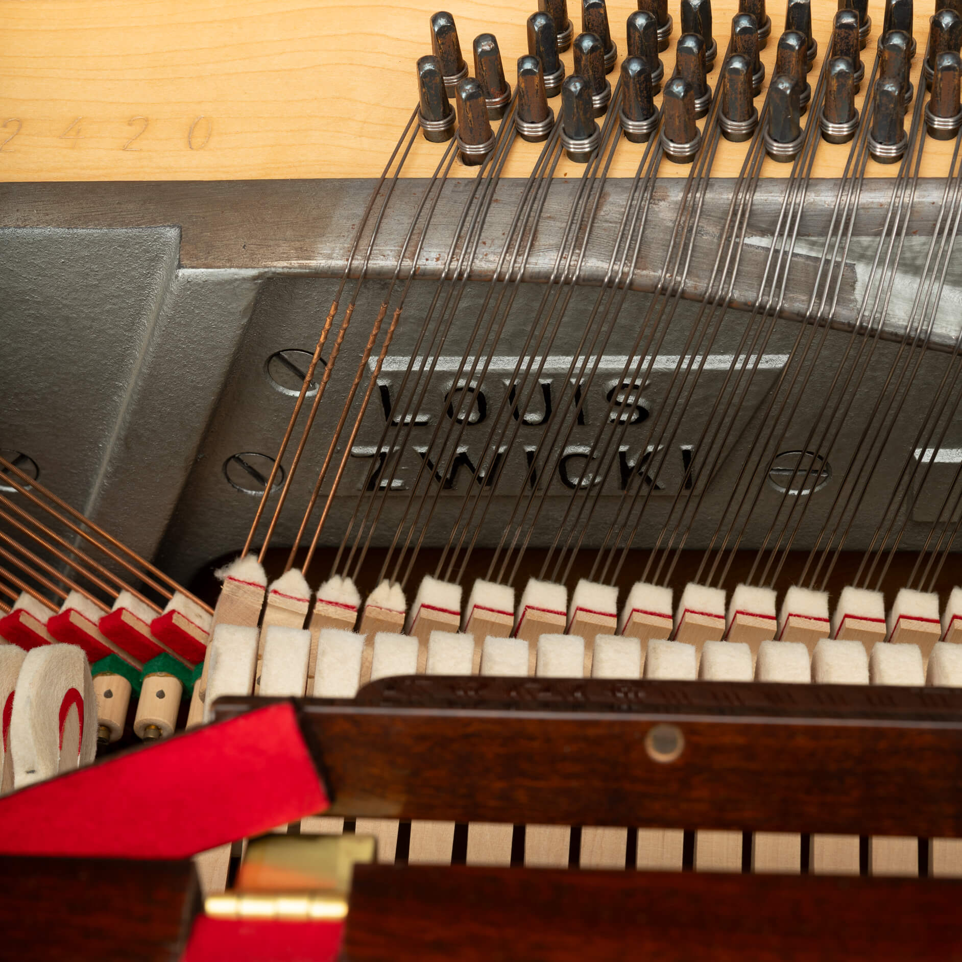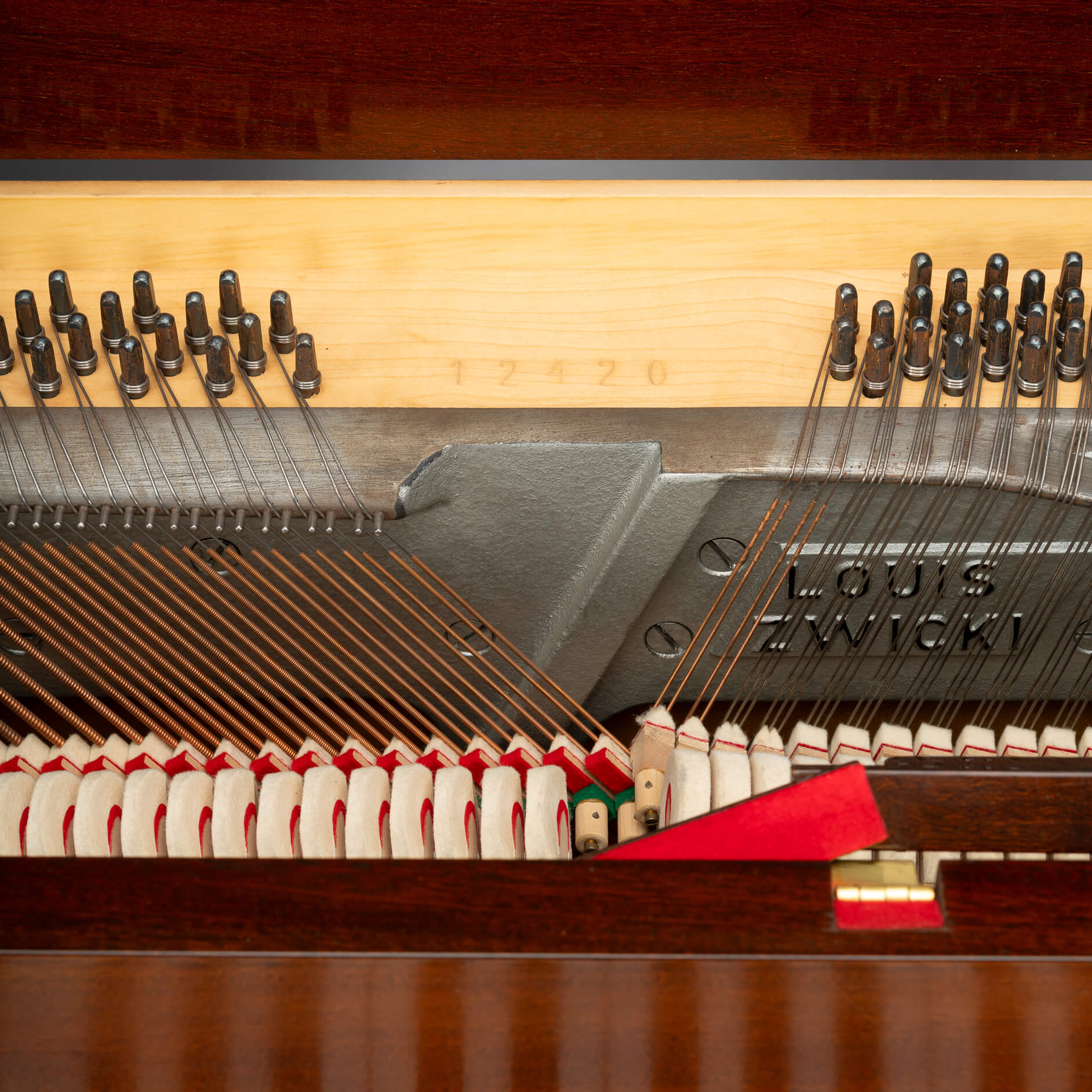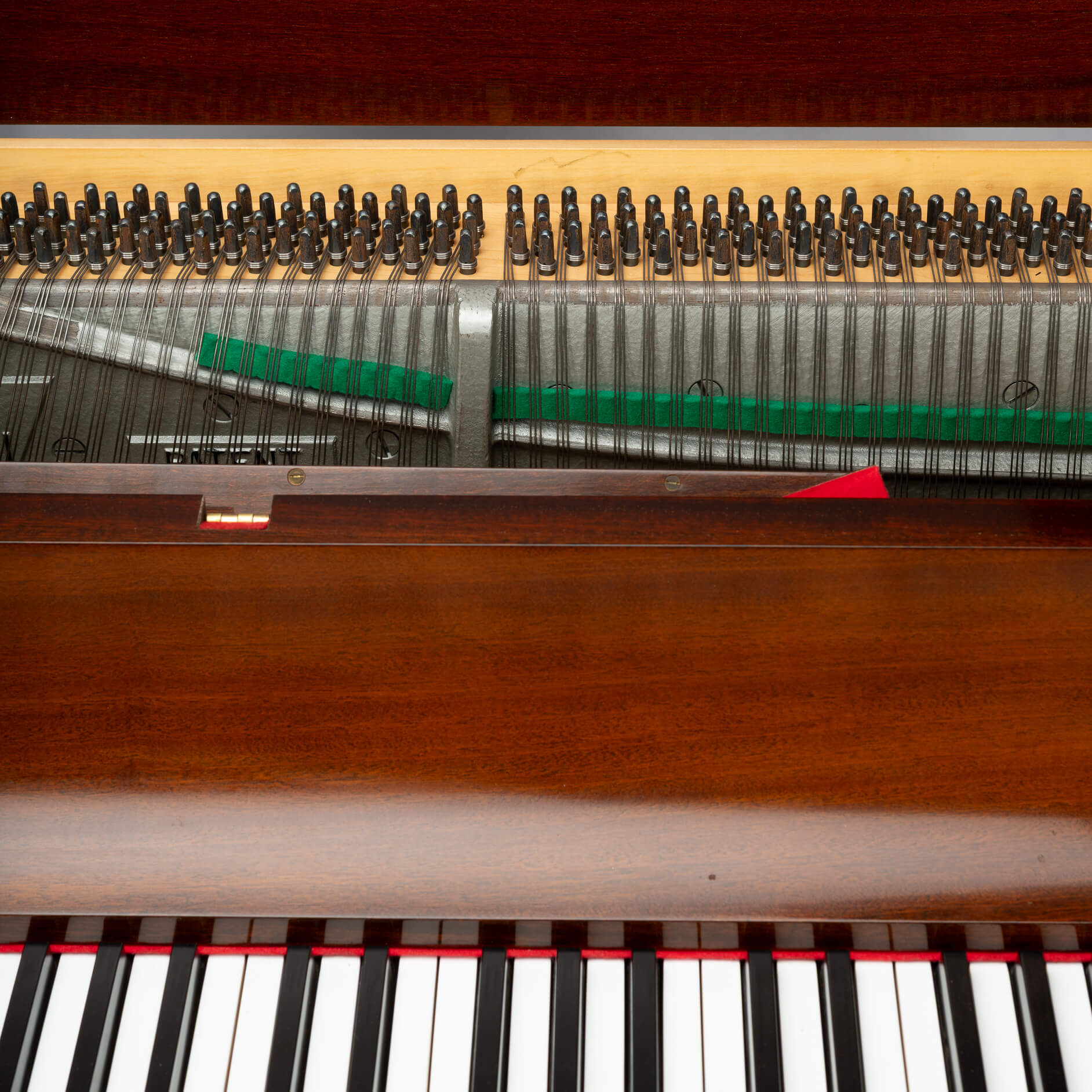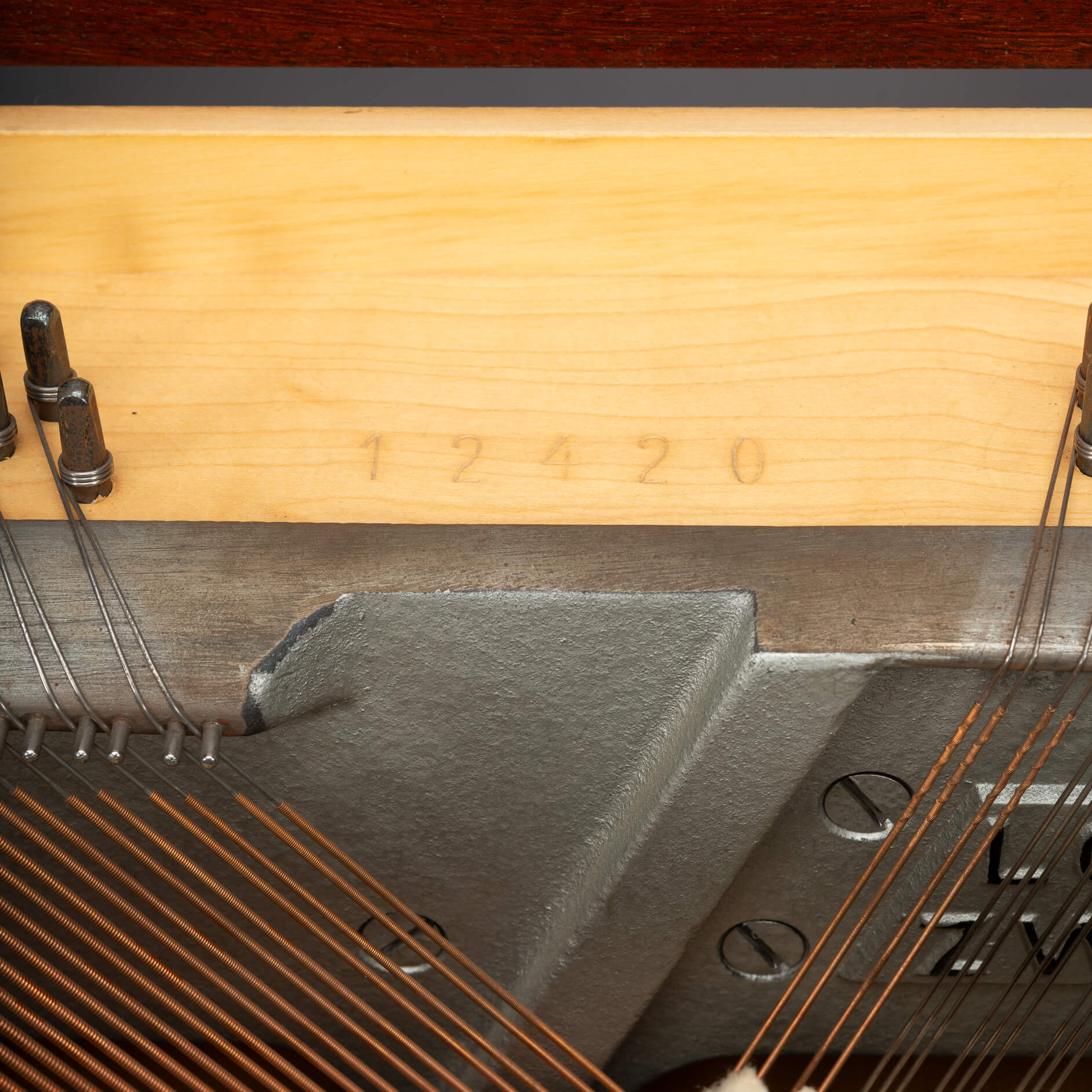 A rare Danish midcentury pianette made of mahogany. It is called pianette due to the 82 keys rather than the standard 88 of a full size piano. This pianette is made by renowned piano maker Louis Zwicki. Every piano from Louis Zwicki is numbered. This one is No. 10498. This piece stands out in a modern interior, lobby of a hotel etc.