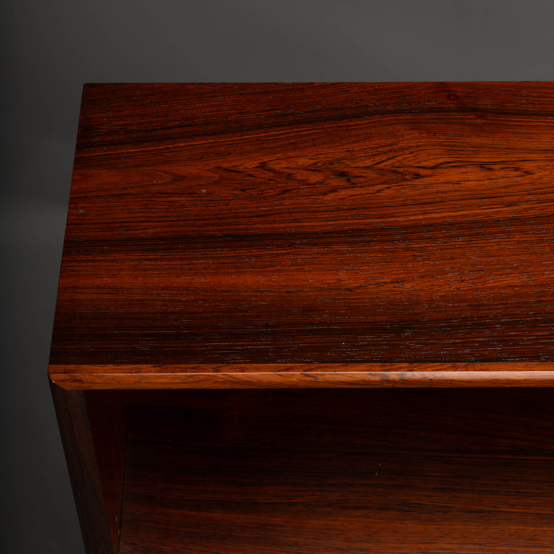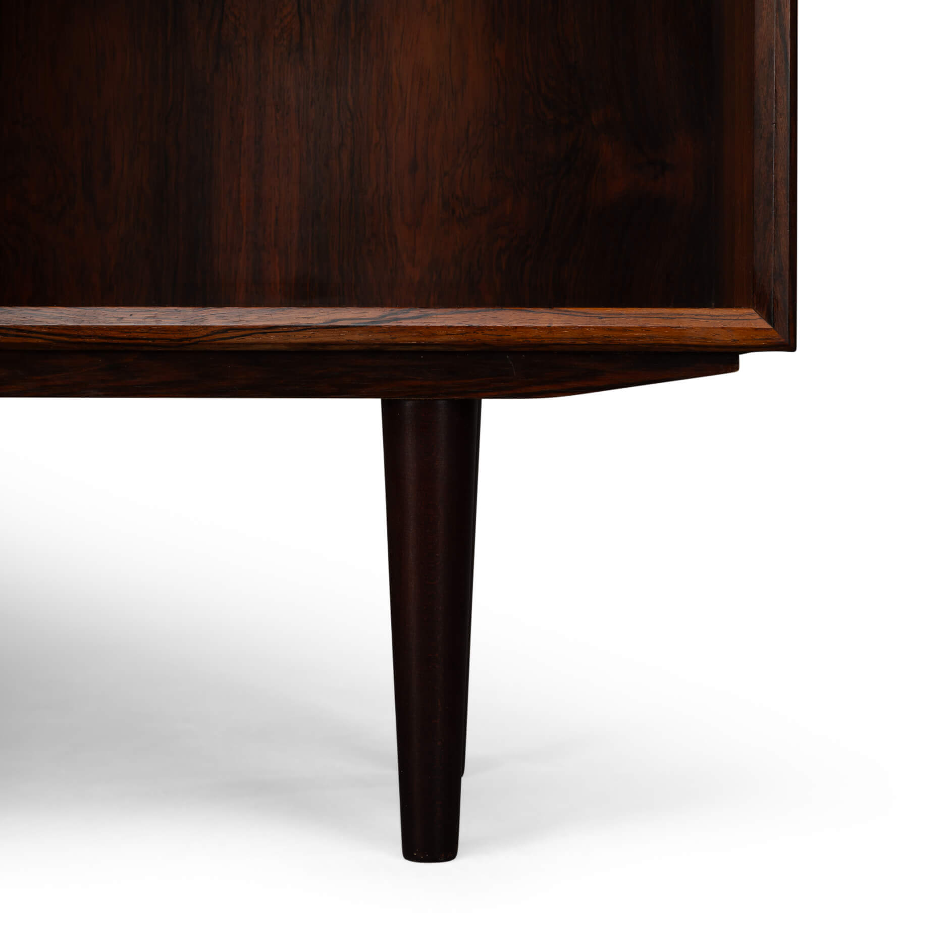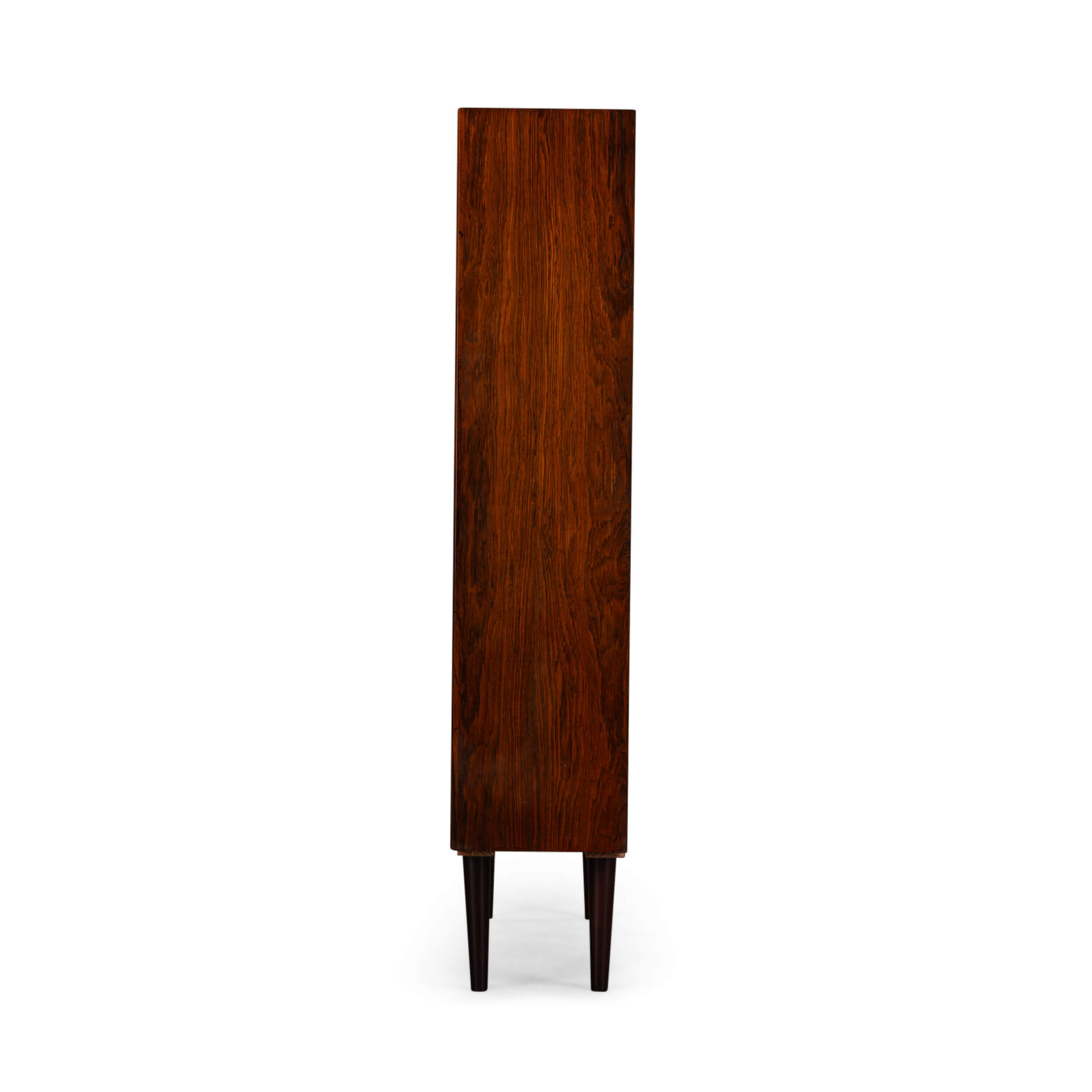 This handsome Danish bookcase from the Mid-Century Modern period perfectly illustrates why Scandinavian design is so beloved. Crafted from beautiful rosewood with a deep color and vibrant grain, it's almost impossible to get lost in it. The bookcase features six height-adjustable shelves, so whether you have a substantial book collection, want to display beautiful objects, or are finally looking for a home for that one designer vase – it all fits. Practical and stylish, just as the Danes intended.Unfortunately, we couldn't identify the designer or manufacturer, but one thing's for sure: this isn't your average bookcase.
