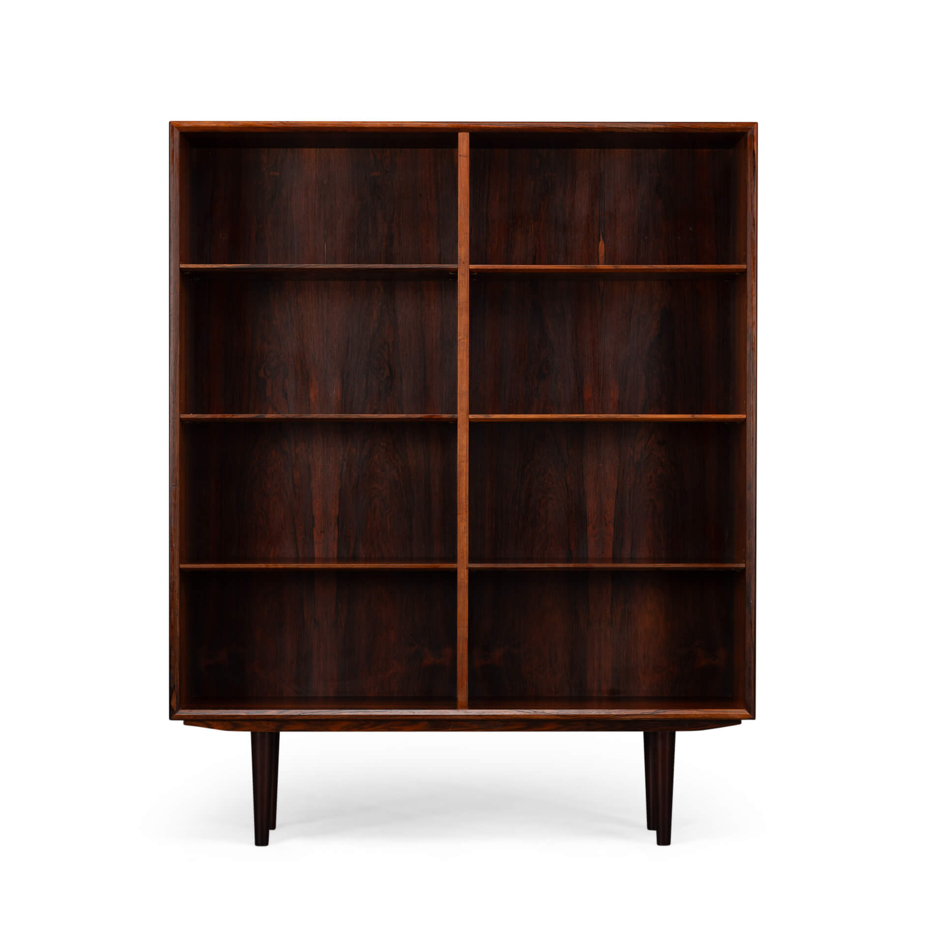 The quality of the wood, the clean lines, and the solid construction clearly demonstrate high-quality Danish craftsmanship from the heyday of mid-century design. In short: a characterful bookcase with character.