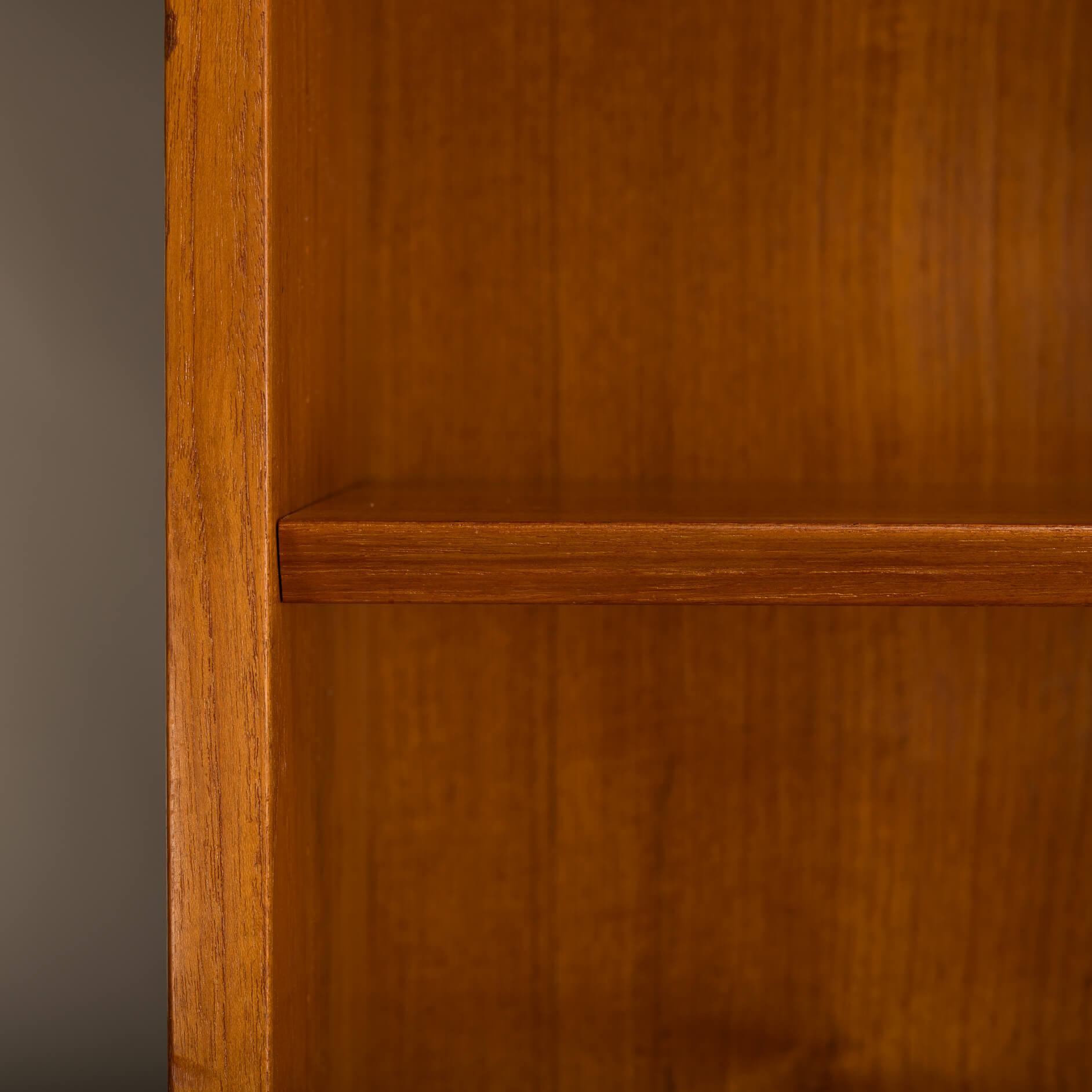 Deze grote boekenkast ontworpen door Carlo Jensen en gemaakt door Hundevad & Co is een tijdloos meubelstuk dat functionaliteit en esthetiek prachtig combineert. Deze boekenkast is met de grootste zorg vervaardigd in de jaren 60 en belichaamt het voortreffelijke vakmanschap en de aandacht voor detail die synoniem zijn aan Deens design. Gemaakt van teak, straalt het elegantie en verfijning uit, waardoor het een echt statement-stuk is voor elk interieur.